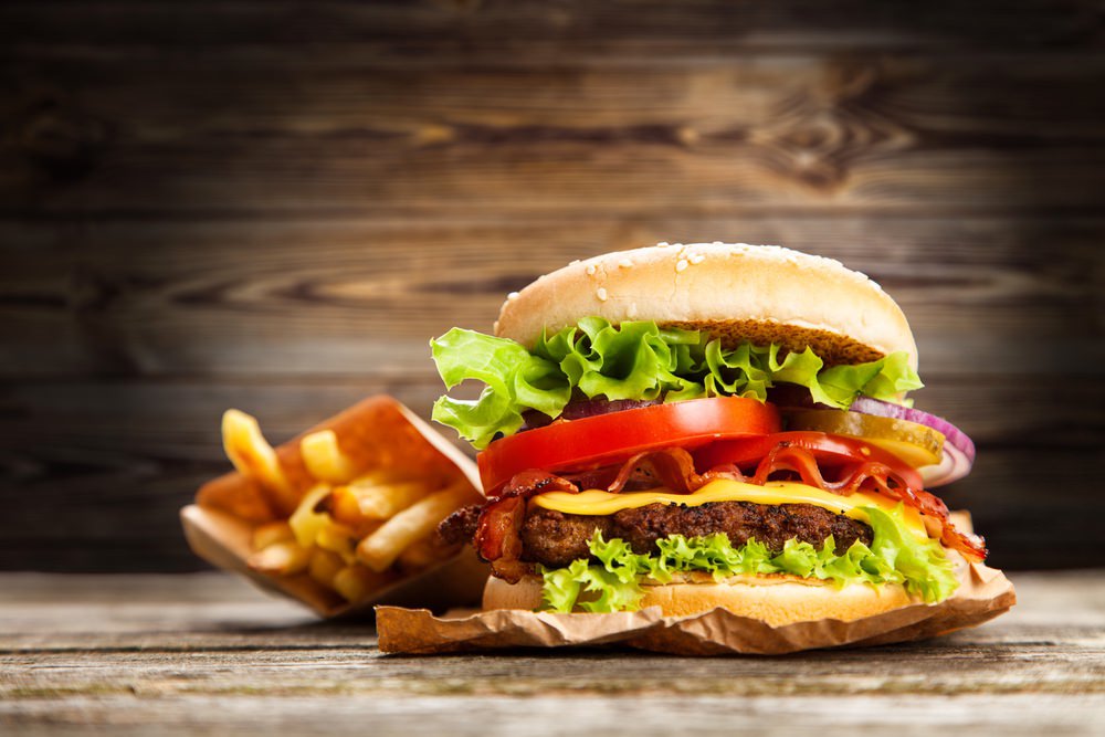 Oklahoma-style smashburger op een brioche aardappelbol, 160 g rundvlees (80/20), American cheddar, gegrilde ui, augurk en sla, afgewerkt met onze secret sauce